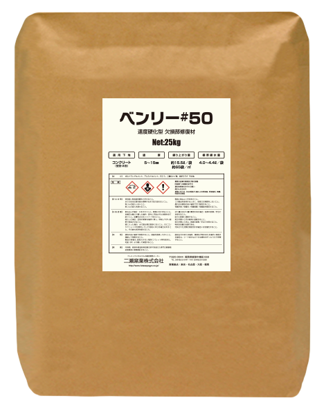 - ベンリー#50は、5℃の作業環境でも約1時間で硬化する超速硬化型のプレミックスポリマーセメント モルタルです。各種強度に優れ、コテ作業性も良い断面補修・欠損部修復に最適な材料です。